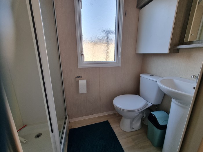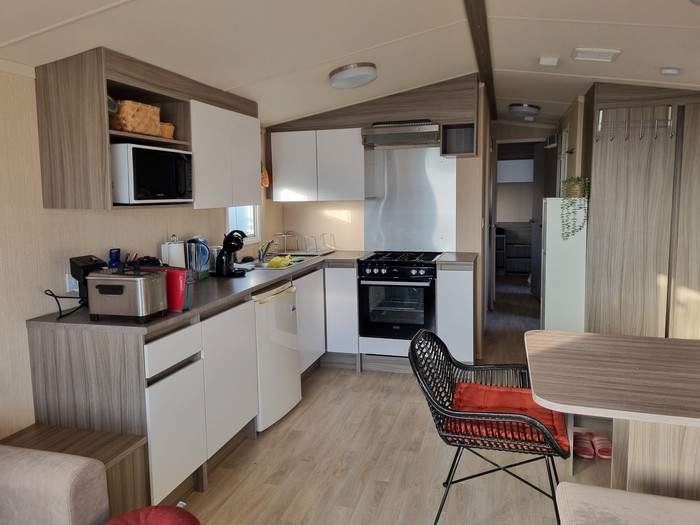 Uitgerust met: - 2 slaapkamers - Badkamer met douche en toilet - Apart toilet - Dubbelglas - Gaskachel Lengte: 11 m., Breedte: 3,7 m.