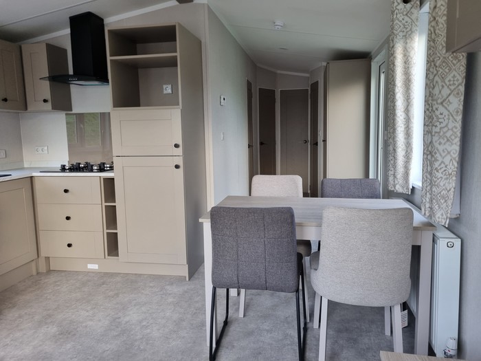 Uitgerust met: - 2 slaapkamers / bedden 2 mtr lang - Badkamer met douche - Apart toilet - Dubbelglas - CV installatie - ingebouwde koel-vriescombinatie Lengte: 10 m., Breedte: 3,85 m.
